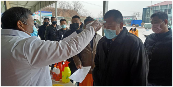 兰陵分公司配合当地政府体温监测 五、做好返岗复工人员的安排,设隔离留观室。对来自疫情发生地的员工,劝其留在原居住地,防止疫情扩散蔓延;已经返工的,要求其自抵达后自我隔离,在隔离场所观察14天。安排单人单间、相对独立房间设立疫区返岗人员厂内临时隔离场所。隔离人员必须每日进行体温测量,如出现发热、咳嗽、乏力等症状的,要戴上口罩立即到就近的定点救治医院发热门诊就诊。隔离结束所有隔离人员必须经过体温检测合格后方可解除隔离。