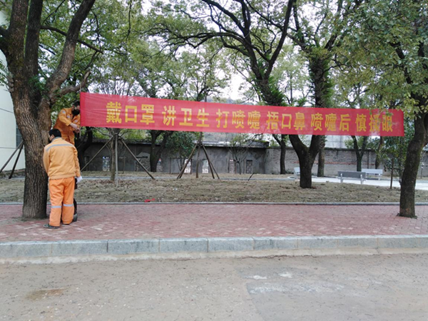 强化管理,严格防控。公司员工无特殊原因严禁外出,不与外界人员接触,自觉做好隔离工作,公共场所必须佩戴口罩,不聚集不串门,人与人之间保持足够的安全距离。 切实保障物资供应,分公司与政府部门、业主及公司多种渠道进行沟通,调配购买电子体温计两台、普通水印体温计50余支、防护口罩300余副用于职工防护,储备100余斤84消毒液用于施工区、办公区及生活区等公共区域每日消杀。