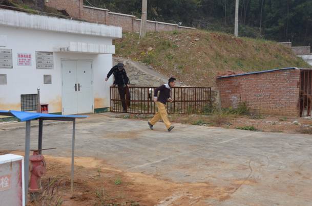 兖州中材江油国大项目部成功举行 炸药库应急防暴演练 宁静的午后,兖州中材江油国大项目部炸药库值班室突然警铃大作,监视设备显示一名男子手持铁锤闯入炸药库。在这危急时刻,炸药库库管、安保员立即向项目部应急救援领导小组报警,同时拨打110报警电话,并进入炸药库实施围堵。 接到警报,项目部领导立即启动炸药库应急预案,根据“敌情”,应急救援领导小组立即集结“护卫队”3名成员乘车直奔炸药库。护卫队赶至炸药库时,离报警时间仅过去三分钟。此时“不法分子”对坚固的库房双层防盗门束手无策,库房凄厉的警报声也给“不法分子”带来沉重的心理压力,骑虎难下的“不法分子”拔出刀具,威胁库管员立即打开雷管库。护卫队员临危不惧成功的对“不法分子”实施了抓捕。最终,被制服的“不法分子”被移交给随后赶到的公安局民警,一场突发事件被迅速平息。