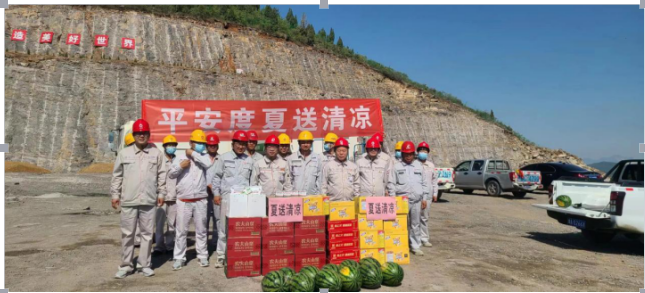炎炎夏日,骄阳似火。6月15日上午,登封中联总经理潘凤祎,常务副总经理刘振河,财务总监靳一平一行,到鞍子岭矿山慰问在高温下奋战的一线员工,并给一线员工送来了西瓜、矿泉水、冰红茶、凉茶、藿香正气水等慰问品,对一线员工的辛勤工作给予了肯定。