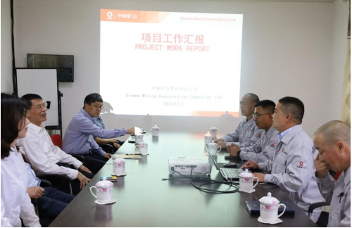 中材矿山赞比亚分公司经理姚金鹏详细地向蒋中文做了工作汇报。蒋中文听取汇报后做出评价:中材矿山赞比亚分公司发扬了矿山工人的能吃苦、肯吃苦的优良传统,特别在开展属地化管理方面思路清晰,成效显著。他要求分公司员工继续坚定履行中材国际的属地化发展战略,创造更优异的成绩。