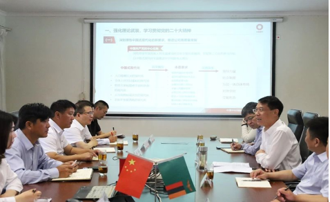 1月20日上午,蒋中文向中材矿山、苏州中材、中材建设、智慧工业等在赞比亚团队讲授主题为“自信自立、守正创新、勇担国际化发展前沿重任”的党课,并提出以下要求:一是强化理论武装,充分学习贯彻党的二十大精神。二是牢固树立战略思维,确保中材国际发展战略在赞比亚有效落实。三是坚持立足属地发展,接续公司国际化发展伟大事业。