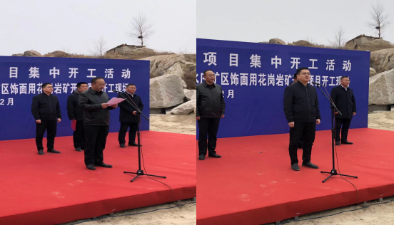 莱州市委常委、市委办公室主任王恒齐对兖州中材入驻莱州表示欢迎,希望项目全体职工尽心尽力,尽职尽责,打造精品工程,绿色矿山,助力莱州石材产业快速振兴,并宣布正式开工。