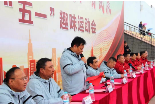 (兖州中材党委委员、副总经理颜景祥致词) 踏着激昂的运动员进行曲节拍,运动员们精神抖擞、斗志昂扬,排列着整齐的方阵,在旗手的引领下,喊着响亮的口号,依次有序地走过主席台。