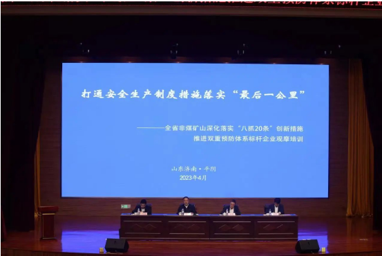 4月27日,由山东省应急管理厅组织的“全省非煤矿山深化落实“八抓20条”创新措施推进双重预防体系标杆企业观摩培训会在平阴召开。