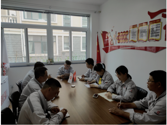 2022年7月2日下午,兖州中材建设有限公司栖霞分公司组织全体员工认真学习“兖州中材建设有限公司重要廉洁风险点及防范措施(试行)”文件。