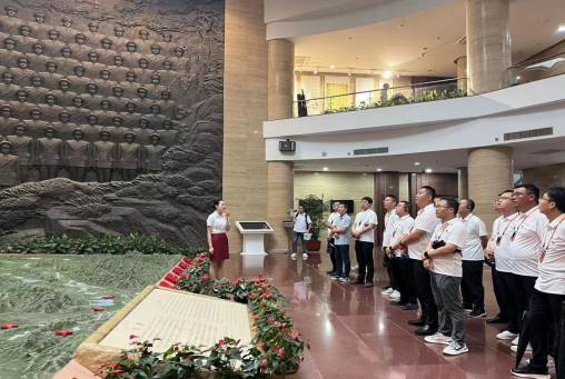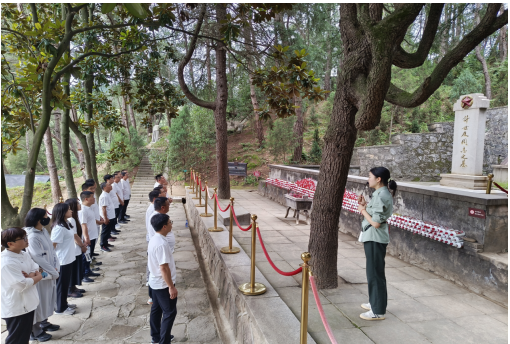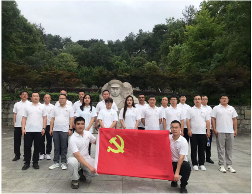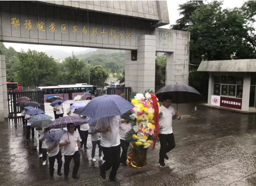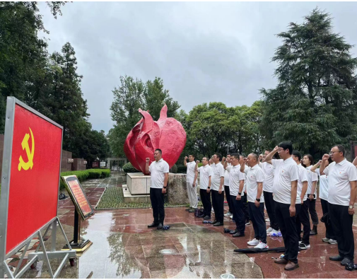 29日,共同前往红色大别山,在鄂豫皖苏区首府革命烈士纪念馆中,以倾盆大雨寄哀思,拾级而上,同志们身着白色上衣整齐列队肃立在革命烈士纪念碑广场,面朝庄严肃穆的纪念碑,在宋道明同志的带领下,全体低头默哀,沉痛哀悼英勇牺牲的烈士,并共同向烈士敬献花篮,同志们庄重的举起右手,面对鲜红的党旗,“我志愿加入中国共产党,拥护党的纲领……永不叛党。”在铿锵有力的誓词中,重温入党初心,同志们初心受到洗礼,理想信念更加坚定。