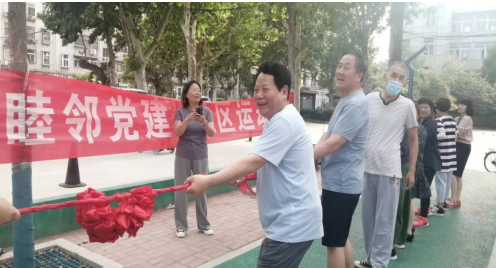 为丰富社区居民的精神文化生活,增强社区居民的身体素质及锻炼意识拉近党员、居民之间的距离,近日,退休党支部与鼓楼街道兴隆社区联合开展“睦邻党建”趣味竞赛活动。 此次活动设有拔河、跳绳、踢毽子、袋鼠跳等趣味运动项目,集趣味性、娱乐性及协作性于一体,吸引众多老党员及社区居民的积极参与。活动现场,运动员们奋勇争先、热情高涨,一旁观战的居民群众也是兴致勃勃,喝彩声此起彼伏,现场气氛十分热烈。在一片欢声笑语中,此次趣味运动会落下帷幕。此次趣味运动会的成功开展,增进了退休党支部与鼓楼街道兴隆社区之间的友谊,拉近了党员与社区居民之间的距离,既增强了退休党员及社区居民的身体素质,又是推进党建区域化融合的实际举措。